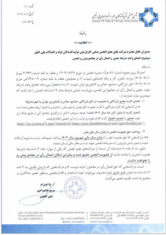 حضور و رأی‌گیری اعضا در مجامع پیش‌روی انجمن لوله و اتصالات پلی اتیلن