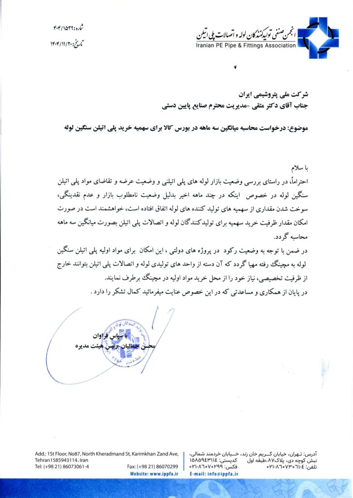 درخواست محاسبه میانگین سه ماهه در بورس کالا برای سهمیه خرید پلی اتیلن سنگین لوله