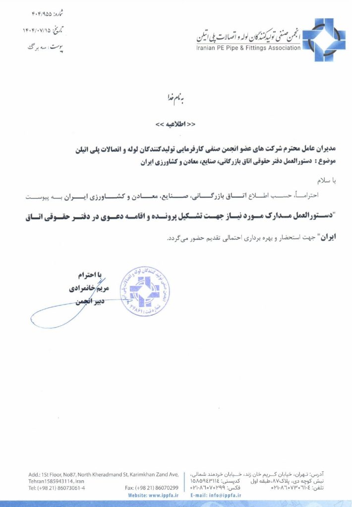 دستورالعمل دفتر حقوقی اتاق بازرگانی، صنایع، معادن وکشاورزی ایران
