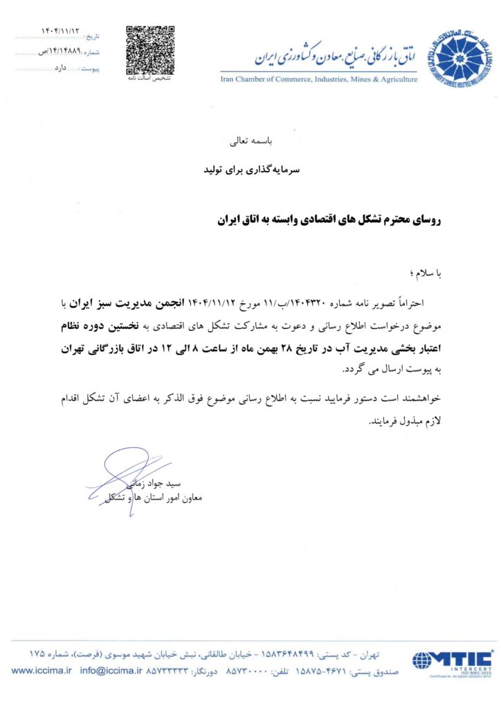 دعوت به مشارکت اعضا در نخستین دوره نظام اعتباربخشی مدیریت آب