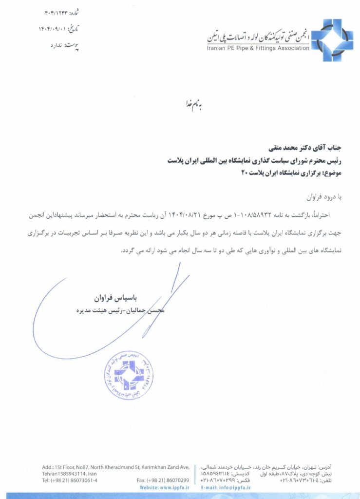 ✅ پیشنهاد برگزاری نمایشگاه ایرانپلاست با فاصله زمانی هر دو سال یکبار