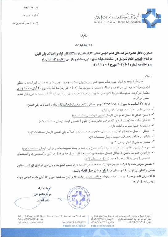 هیئت مدیره انجمن لوله و اتصالات پلی اتیلن