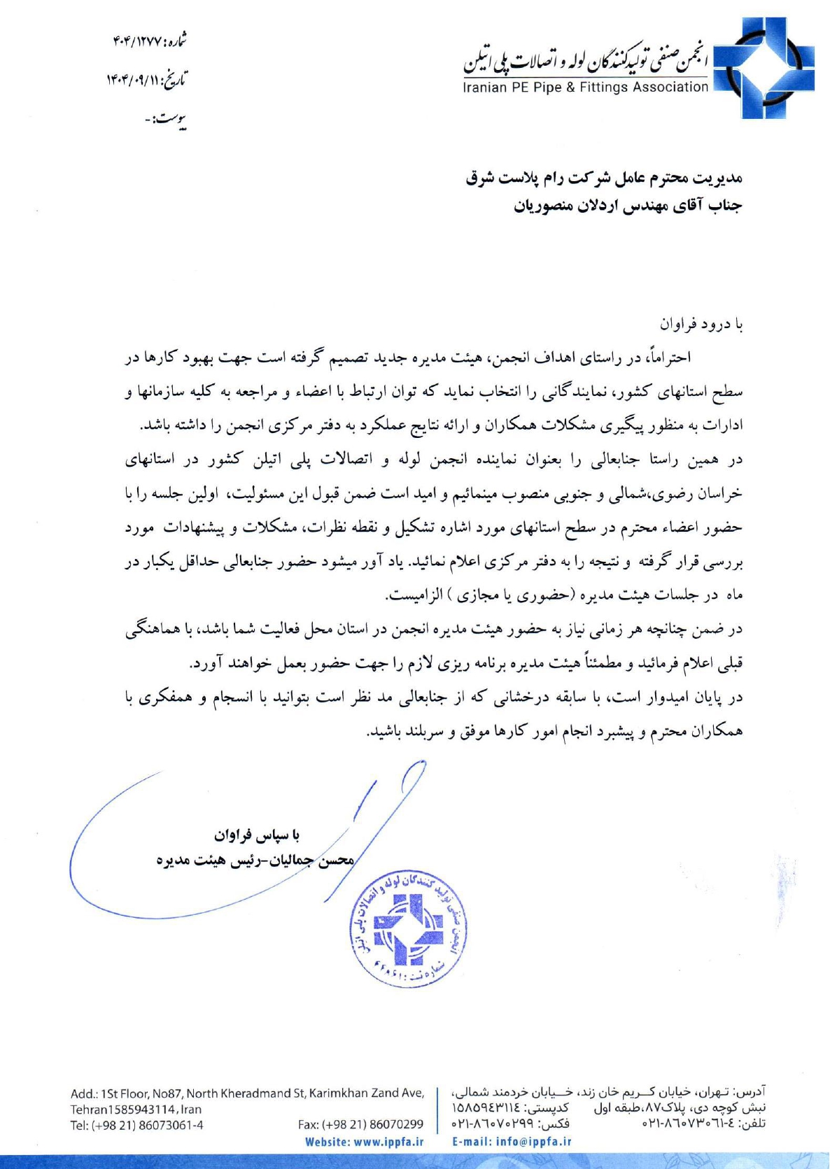 انتصاب نماینده انجمن در استانهای خراسان رضوی، شمالی و جنوبی